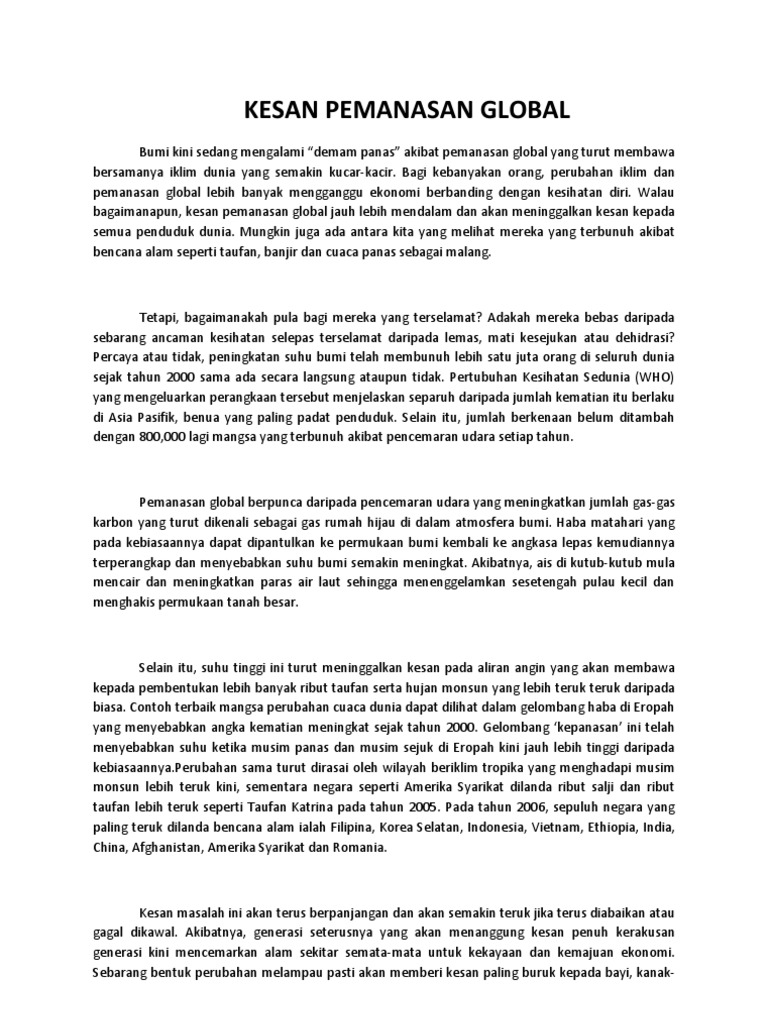 Kesan Pemanasan Global Contoh Karangan Bahasa Melayu Pdf